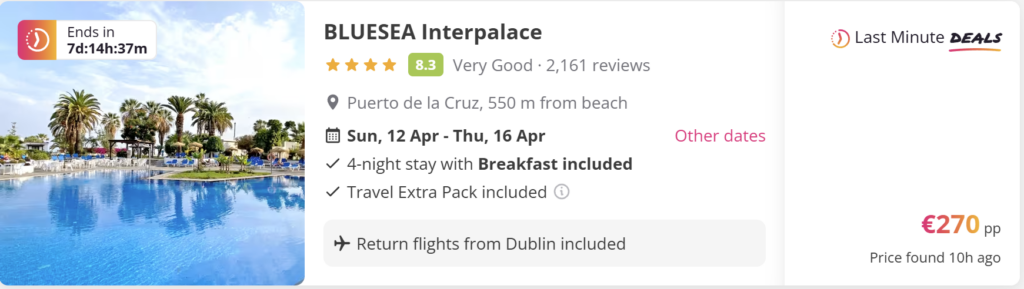 All details are correct at the time of posting. Prices and availability can change at any moment, as package deals are dynamic.