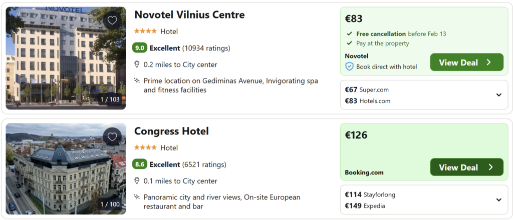 Atrask pigiausius viešbučius Vilniuje ir visoje Lietuvoje. Kasdien atnaujinami pasiūlymai, realios kainos ir tiesioginės rezervacijos.