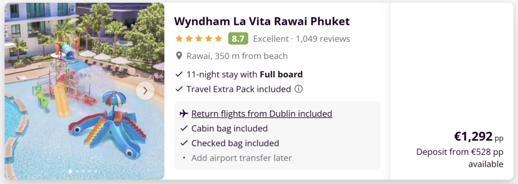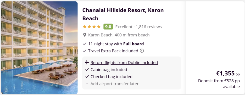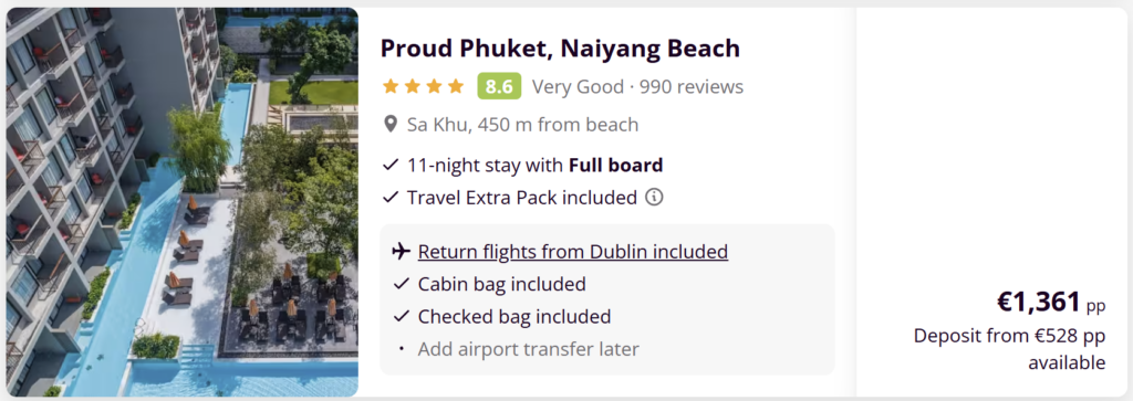 Holiday packages like this make it easier and more affordable to travel to Thailand from Ireland without the hassle of booking everything separately.